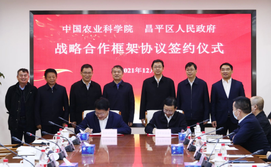 12月1日,中國農(nóng)業(yè)科學(xué)院與北京市昌平區(qū)人民政府舉行共建國家未來農(nóng)業(yè)中心戰(zhàn)略合作框架協(xié)議簽約儀式。農(nóng)業(yè)農(nóng)村部黨組成員、中國農(nóng)科院院長吳孔明,院黨組書記張合成,副院長王漢中、劉現(xiàn)武,昌平區(qū)委書記甘靖中,區(qū)委副書記、代區(qū)長支現(xiàn)偉,副區(qū)長楊仁全、郭清堯參加活動(dòng)。劉現(xiàn)武和楊仁全代表雙方在協(xié)議上簽字。