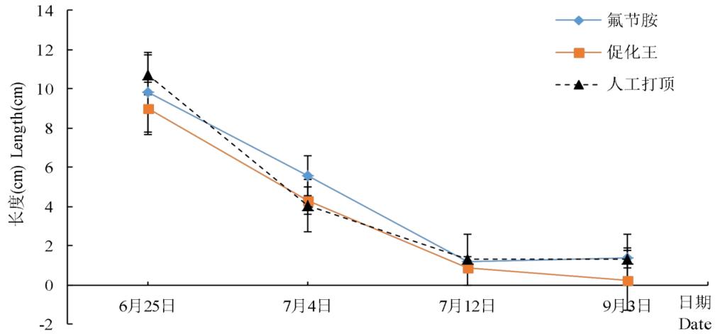 3.5.2 不同化學(xué)打頂劑對不同品種主莖增長量的影響